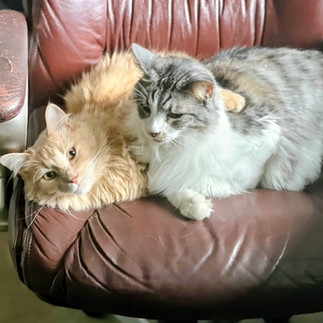 Who remembers these babies? Milagro and Leon (both born 3/2021) - truly miracle babies. They were so malnourished and dehydrated when they arrived; they were a round-the-clock effort for quite some time! Look at them now! Milagro is now called Ozzy which is short for Ozymandias and Leon is now known as Icarus, called Russ. These two met at the Sanctuary and immediately bonded. Adopted in December, 2021, we're told they remain very close and that Ozzy is the calm one, and Russ is adventurous and likes to climb up high. While Ozzy is aloof with people other than his personal hoomans, Russ wants to be the center of attention. Seeing our miracles full grown and living the good life reminds me why I'm doing this!